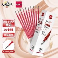得力连中三元中性笔芯0.5mm碳素笔芯快干油墨水笔芯签字笔芯学生考试用笔芯刷题水性笔芯 【拔帽 全针管】20支红色, 【拔帽 全针管】20支黑色
